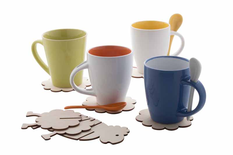 Set coastere personalizate, 4 bucati. Coasterele au diferite forme si sunt fixate pe un suport. In momentul asamblarii setului de coastere personalizate vei descoperi diverse figurine de animale: hipopotam, elefant sau oaie. Produsul este confectionat din placaj de mesteacan si se livreaza dezasamblat. Dimensiuni: 19.5 x 10 x 8 cm. Pretul afisat nu include costurile pentru personalizarea produsului. Aceste costuri se calculeaza la cerere in functie de detaliile de personalizare ale proiectului dvs. Pentru personalizare coaster va recomandam gravura sau serigrafia. Comanda minima: 50 buc. Pretul nu include TVA.