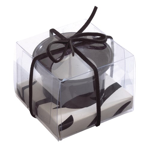 Lumanare personalizata cu suport din sticla de culoare neagra. Produsul se livreaza ambalat in cutie transparenta. Dimensiuni: 6,7 x 6,7 x 4,8 cm. Va recomandam personalizarea prin eticheta volumetrica. Costurile de personalizare se calculeaza separat in functie de cerintele clientului. Comanda minima 100 buc. Pretul nu contine TVA.
