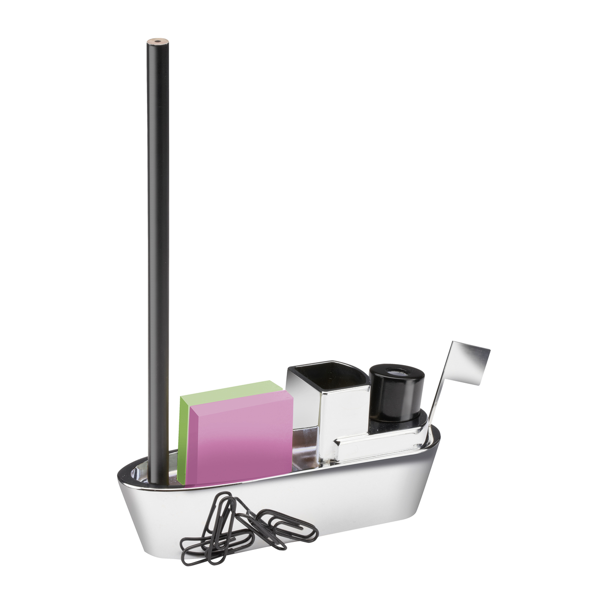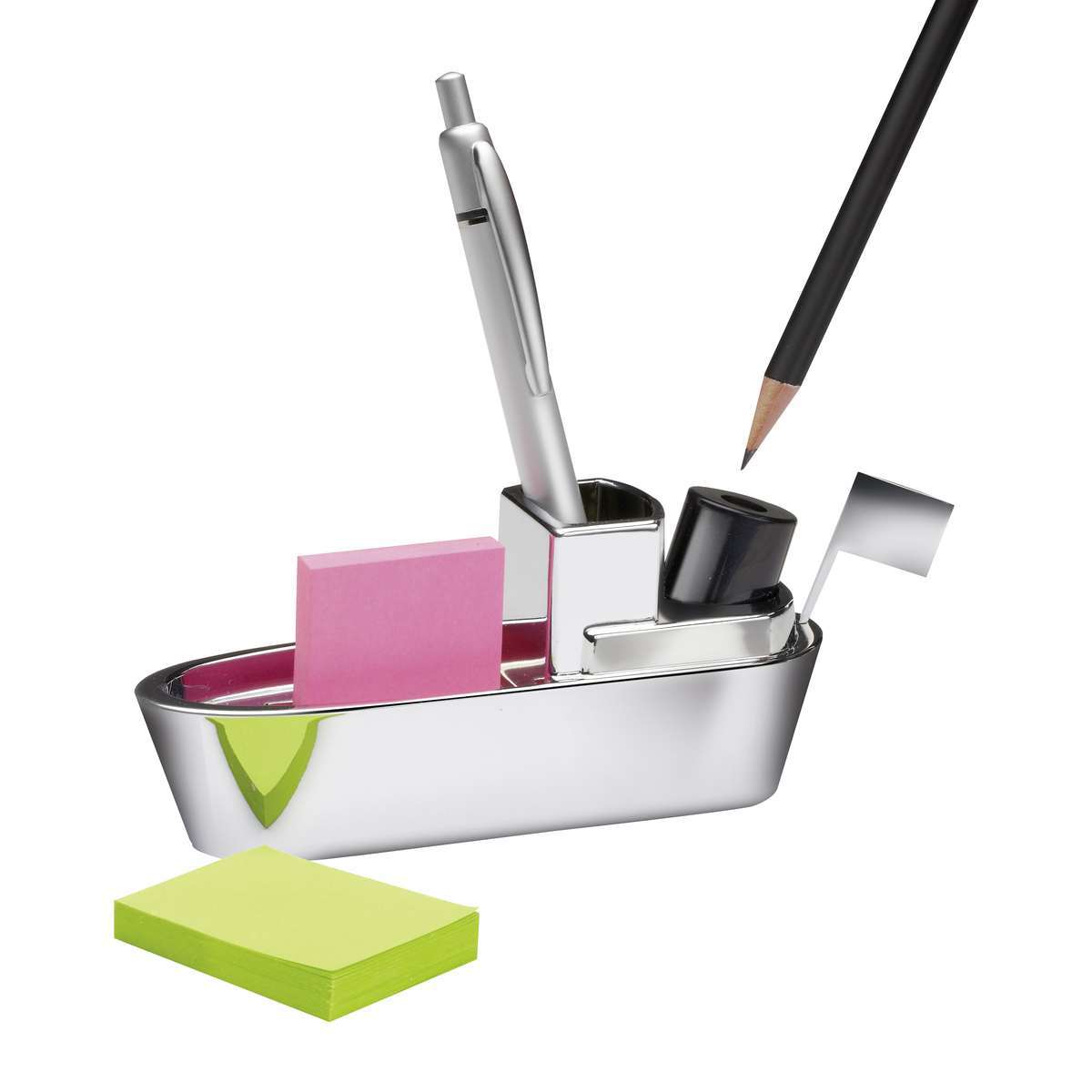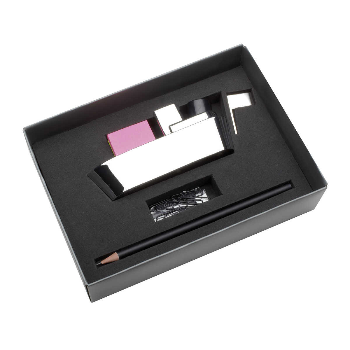 Set birou personalizat in forma de vapor alcatuit din Suport personalizat metalic, bloc notes-uri, ascutitoare, creion, agrafe birou. Baza Suport personalizatului este magnetica permitand in acest fel fixarea agrafelor de birou. Este confectionat din metal si se livreaza ambalat in cutie cadou. Dimensiuni: 130 x 58 x 37 mm. Recomandam personalizare prin tampografie, gravura sau print UV. Costurile de personalizare se calculeaza in functie de specificatiile proiectului dvs. Cantitate minima 50 buc. Pretul nu contine TVA.