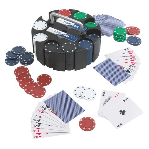 Joc de poker personalizat. Include jetoane, carti de joc si suport cu maner pentru toate piesele. Se livreaza ambalat in cutie cadou. Dimensiuni: diametru 19,5 x 12 cm. Se recomanda personalizarea produsului prin tampografie. Costurile de personalizare se calculeaza separat in functie de specificatiile proiectului dvs. Comanda minima 50 buc. Pretul nu contine TVA.
