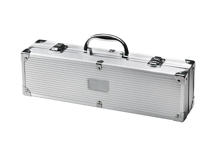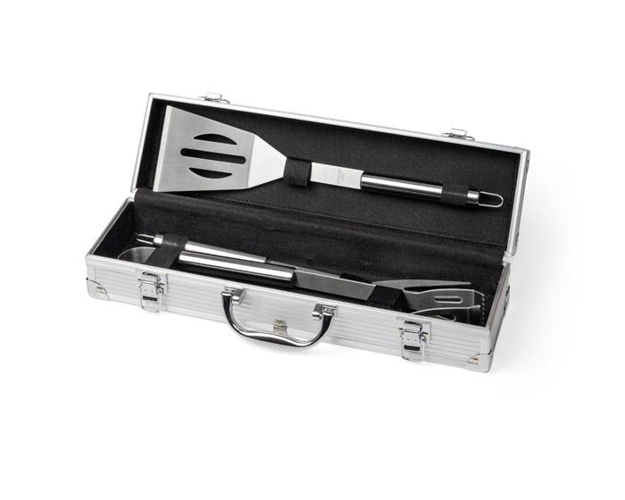 Set personalizat ustensile pentru gratar alcatuit din 3 piese confectionate din otel inoxidabil: spatula, cleste si furculita. Componenetele sunt dipuse intr-o cutie metalica prevazuta cu maner si incuietori metalice. Dimensiuni: 370 x 100 x 80 mm. Va recomandam personalizarea prin gravura laser. Costurile serviciului de personalizare se calculeaza separat in functie de specificatiile proiectului dvs. Comanda minima 50 buc. Pretul nu contine TVA.