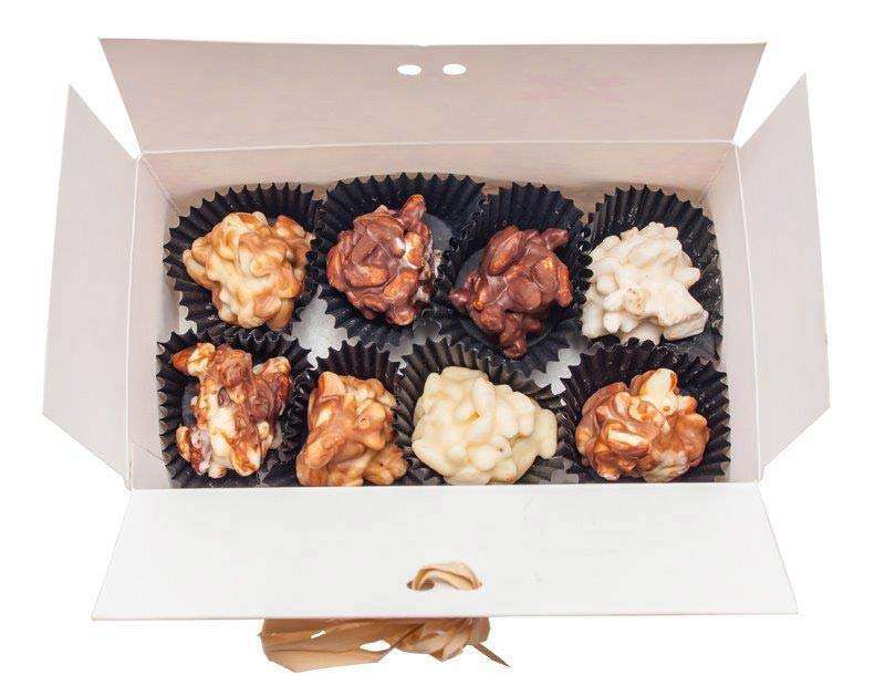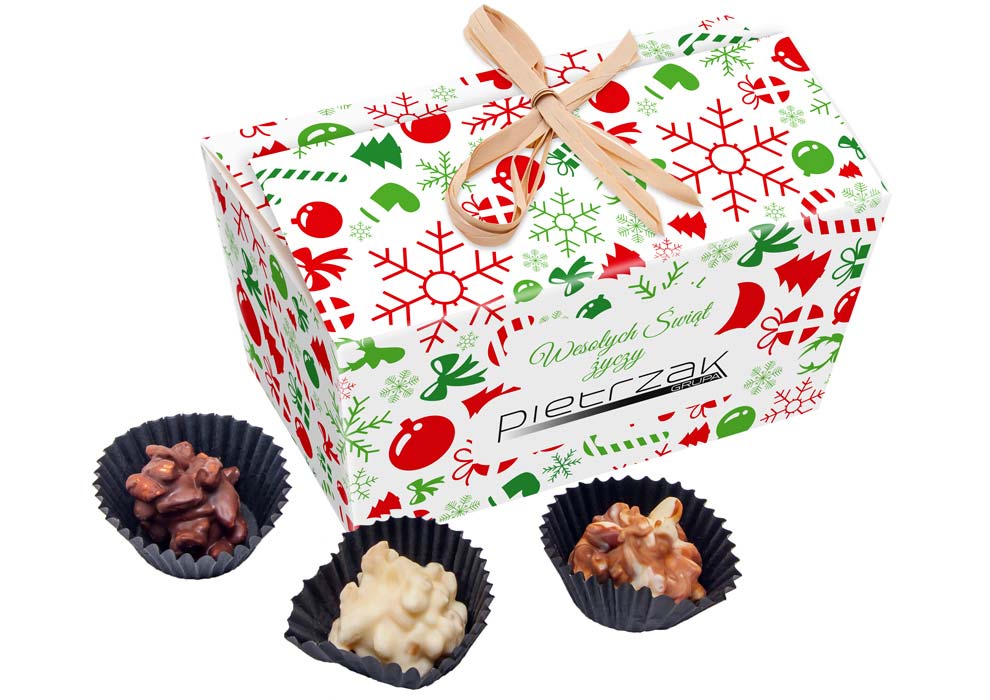 Cutie cu specialitati din ciocolata belgiana in editie dedicata sarbatorilor de iarna. Contine 16 praline fabricate din orez si diferite tipuri de ciocolata belgiana (ciocolata clasica, ciocolata alba sau ciocolata cu lapte). Alege sa transmiti felicitari dulci pentru Craciun prin intermediul acestei cutii cu bomboane speciale si delicioase. Produsul are un design deosebit iar pralinele sunt dispuse pe doua randuri la interiorul unei cutii personalizate care se inchide cu o panglica din rafie. Ciocolata personalizata este un produs indragit de toata lumea. Acest desert aduce bucurie oricui datorita calitatii si rafinamentului ciocolatei. Utilizeaza acest desert special din ciocolata in campaniile promotionale de Craciun, pentru cadouri corporate de Craciun sau pentru cadouri personalizate si cu siguranta nu vei da gres. Gramaj: 82g. Dimensiuni cutie: 14.5 x 8.4 x 5.7 cm. Termen de valabilitate: 6 luni. Pretul include personalizarea produsului imprimare digitala. Comanda minima: 100 buc.