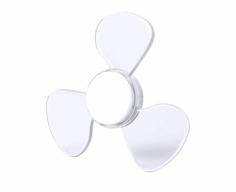 Spinner personalizat confectionat din plastic. Este un produs personalizat care se adreseaza atat copiilor cat si adultilor motiv pentru care acesta poate fi inclus pe lista de materiale promotionale din diverse domenii. Zona centrala de culoare alba va ofera posibilitatea personalizarii produsului. Culori: transparent, rosu, albastru, negru. Dimensiuni: 7.9 x 7.9 x 1.2 cm. Pretul afisat nu include costurile pentru personalizarea produsului. Aceste costuri se calculeaza la cerere in functie de detaliile de personalizare ale proiectului dvs. Pentru personalizare spinner va recomandam tampografia. Comanda minima: 100 buc. Pretul nu include TVA.