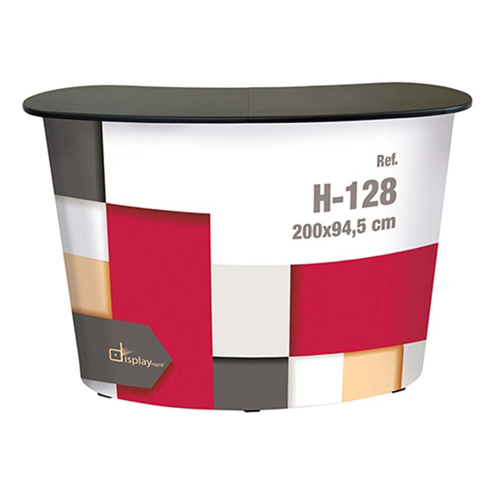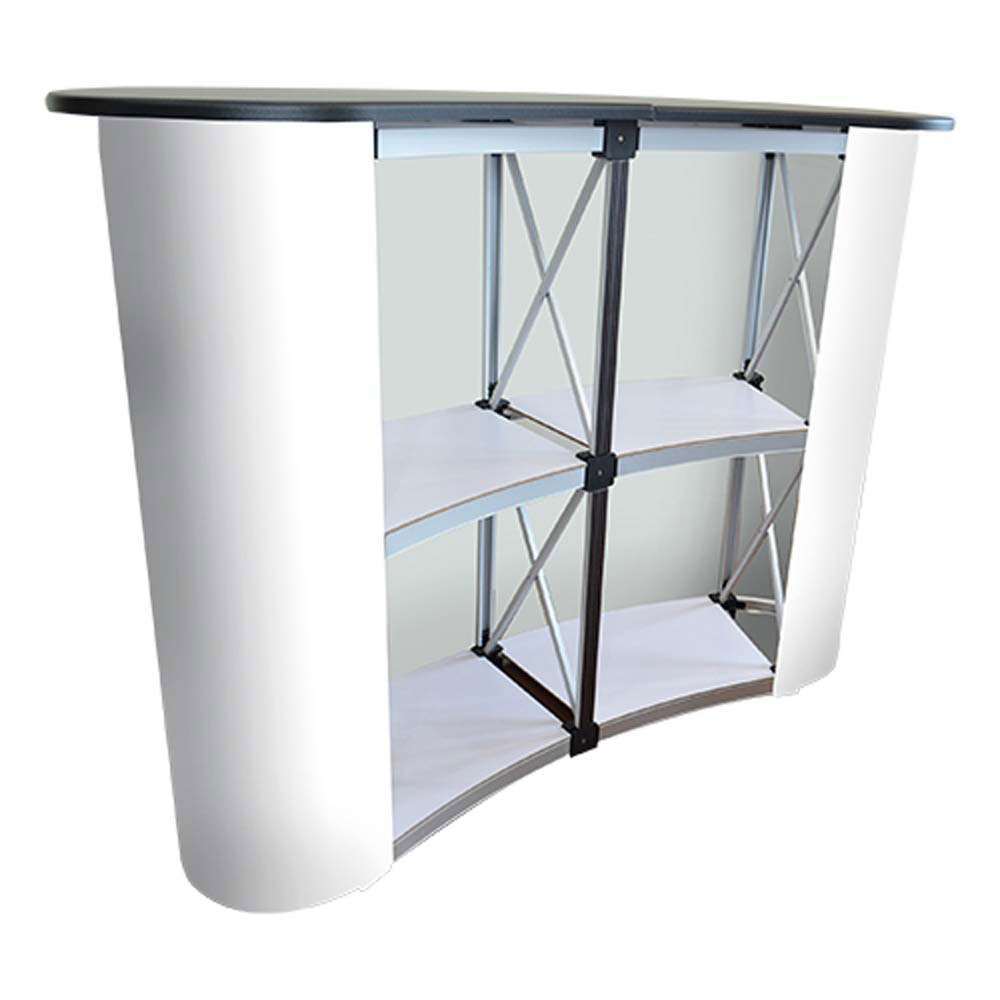 Stand curbat ideal pentru promovarea produselor sau pentru lansarea acestora. Produs confectionat din lemn si aluminiu. Partea superioara prezinta o polita din lemn potrivita pentru expunerea produselor/materialelor. Este prevazuta cu o zona frontala generoasa care poate fi personalizata in functie de necesitati (dimensiuni grafica: 200 x 94.5 cm). In partea din spate este prevazuta cu zona cu rafturi ideala pentru depozitare. Podusul nu include printul. Se livreaza cu geanta din poliester prevazuta cu roti. Dimensiuni: 105.5 x 95 x 29.5 cm. Va recomandam sa personalizati acest produs prin: print policromie. Costurile de personalizare se calculeaza separat in functie de cerintele clientului si de specificatiile proiectului care se doreste a se realiza. Comanda minima 50 buc.