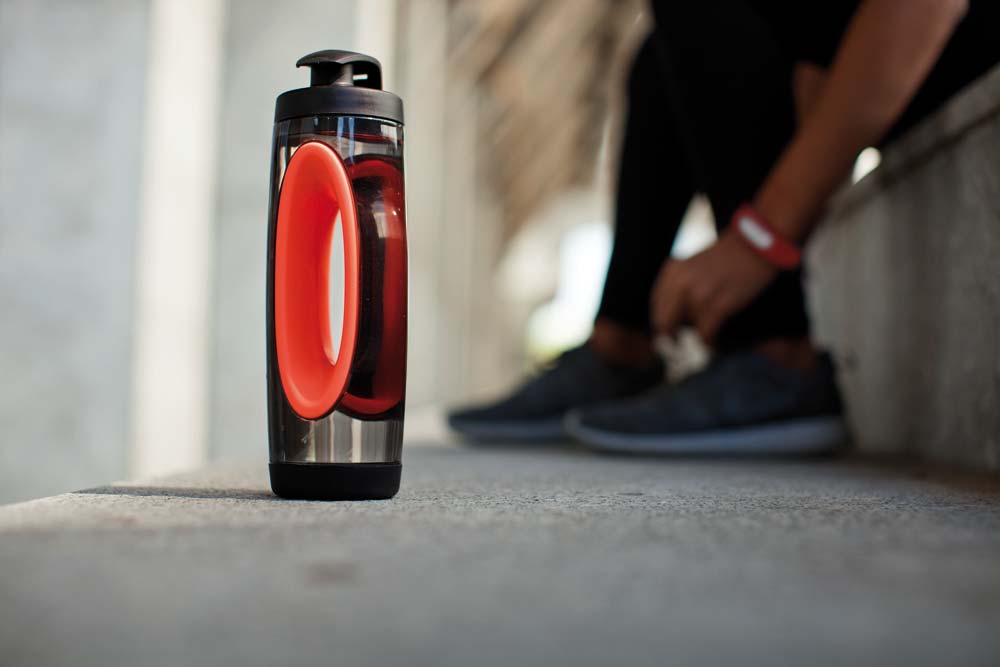 Bidon apa personalizat cu design modern special creat pentru utilizarea in timpul alergarii. Capacul impiedica picurarea si este foarte usor de utilizat. Are o capacitate de 550ml si este un produs ideal pentru hidratarea din timpul antrenamentelor sau a activitatilor sportive in aer liber. Avand partea centrala decupata acest produs poate fi tinut in mana in timpul alergarii eliminand in acest fel alte accesorii pentru depozitarea apei. Produs BPA free confectionat din tritan si polipropilena. Culori: negru, albastru, rosu. Dimensiuni: 7.2 x 6.8 x 24.1 cm. Pentru personalizare produs va recomandam tampografia. Costurile de personalizare se calculeaza separat in functie de cerintele clientului. Comanda minima 50 buc.