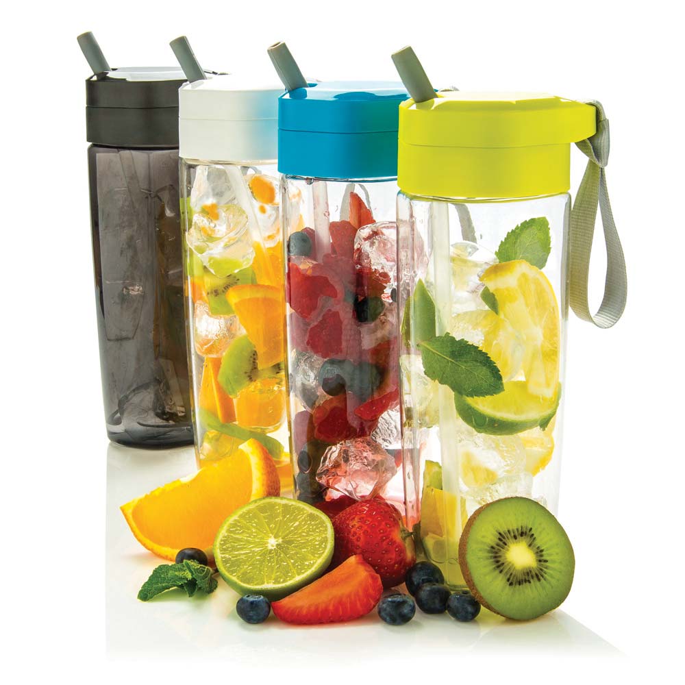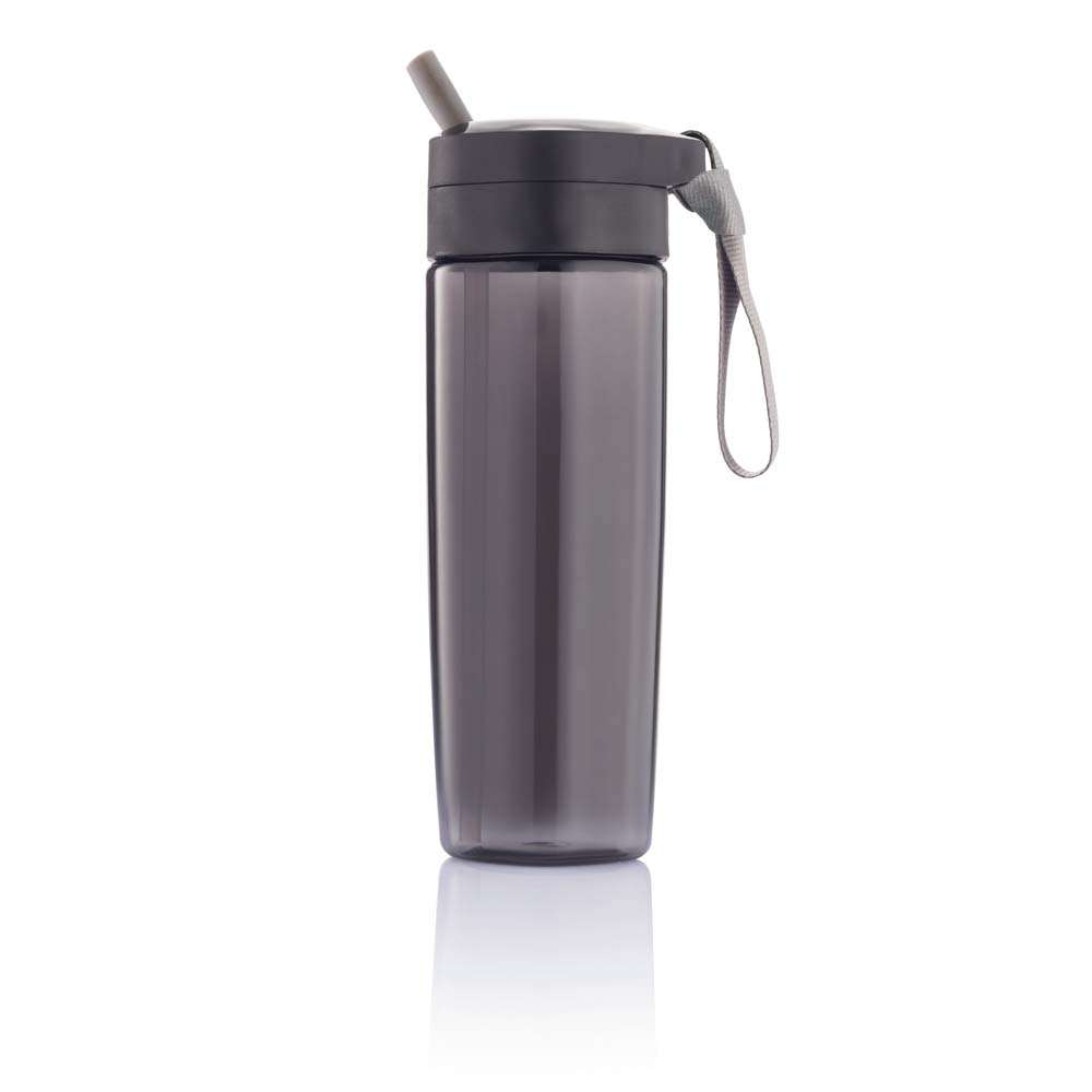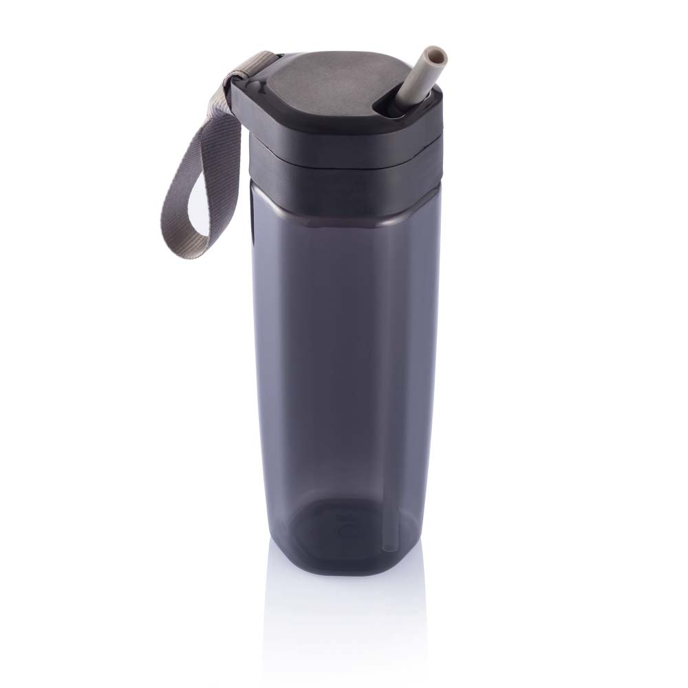 Bidon apa personalizat cu design modern si curea pentru agatare sau transport. Este un produs ideal pentru hidratarea din timpul antrenamentelor sau a activitatilor sportive in aer liber. Este prevazut cu pai pentru un consum simplu si rapid fara a fi necesara inclinarea. Pentru a inchide/deschide sticla personalizata trebuie doar sa rasuciti partea superioara a capacului. Este un produs cu o capacitate de 650ml ideal pentru drumetii sau antrenamente sportive. Produs BPA free confectionat din tritan si polipropilena. Culori: albastru, alb, negru, verde. Dimensiuni: 7.5 x 8.2 x 21.3 cm. Pentru personalizare produs va recomandam tampografia. Costurile de personalizare se calculeaza separat in functie de cerintele clientului. Comanda minima 50 buc.