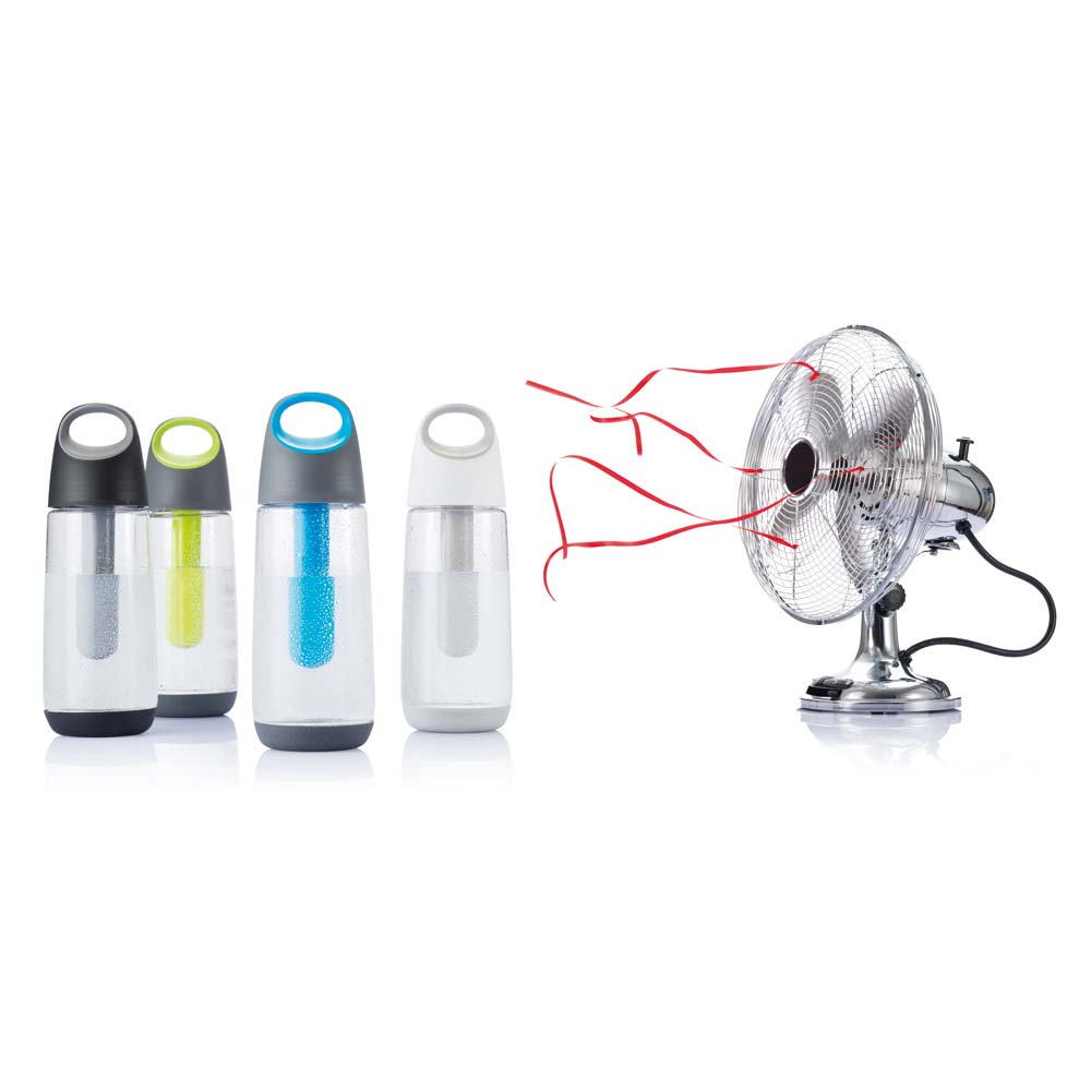 Bidon apa personalizat cu design modern si element incorporat pentru racirea lichidului. Este un produs cu o capacitate de 700ml ideal pentru drumetii sau antrenamente sportive. Capacul acestui recipient personalizat este prevazut cu maner pentru facilitarea transportului. Produs BPA free confectionat din tritan si polipropilena. Culori: gri/albastru, gri/alb, gri/negru, gri/verde. Dimensiuni: diametru 8 x 25 cm. Pentru personalizare produs va recomandam tampografia. Costurile de personalizare se calculeaza separat in functie de cerintele clientului. Comanda minima 50 buc.
