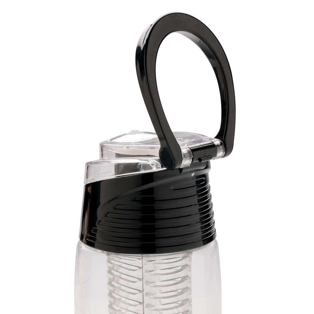 Bidon apa personalizat prevazut cu infuzor pentru fructe. Are o capacitate de 700ml si este foarte util la prepararea apei cu aroma de fructe proaspete. Infuzorul poate fi utilizat si pentru racirea cu cuburi de gheata a lichidului. Este un produs ultil in special pe timpul verii cand nevoia de hidratare a organismului este mai mare. Capacul este foarte usor de utilizat, este prevazut cu sistem de blocare iar consumul lichidului este foarte facil. Produs BPA free confectionat din tritan si ABS. Dimensiuni: diametru 7.5 x 23 cm. Pentru personalizare produs va recomandam tampografia. Costurile de personalizare se calculeaza separat in functie de cerintele clientului. Comanda minima 50 buc.