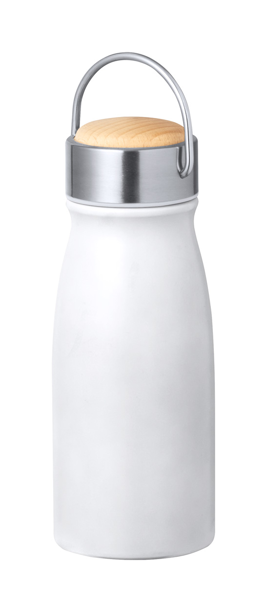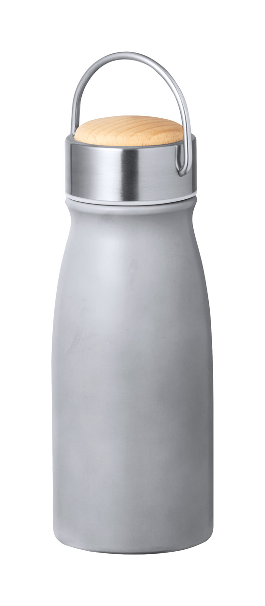 Sticla termos din oțel inoxidabil reciclat, cu perete dublu si capac de transport din lemn. Capacitate: 350 ml. Se recomanda personalizarea prin tampografie, gravura, gravura pe rotund sau serigrafie directa pe rotund, imprimare pe rotund cu LED UV. Costurile de personalizare se calculeaza separat, in functie de detaliile de personalizare dorite. Culori disponibile: Alb, Albastru, Negru, Argintiu. Dimensiuni: ø66×175 mm. Comanda minima 50 buc. Pretul nu contine TVA.