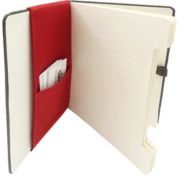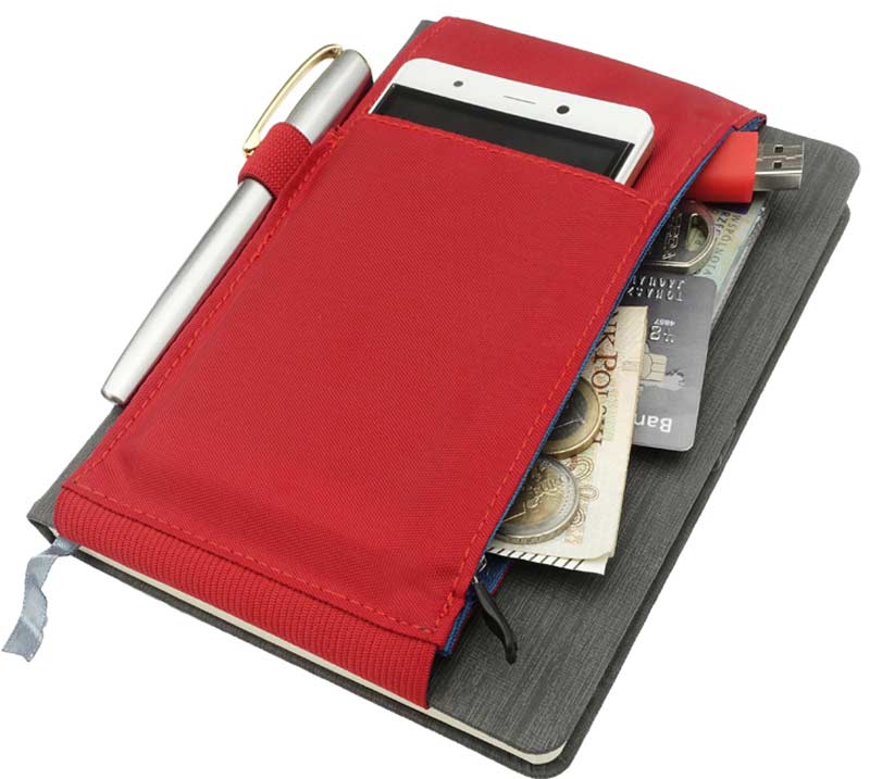 Suport coperta agenda pentru restul accesoriilor de birou necesare in timpul unei intalniri. Prezinta componente elastice care permit fixarea suportului pe coperta mai multor tipuri de agende. Este un accesoriu util care iti permite sa ai cu tine mereu telefonul, cartile de vizita, diverse documente si alte accesorii de birou. Suportul personalizat este compus din: buzunar cu fermoar, buzunar pentru carti de vizita, buzunar frontal si suport pentru instrument de scris. Este un produs modern care se poate transforma intr-un obiect promotional de succes pentru compania, serviciile sau produsele tale. Produs confectionat din poliester 300D. Culori: rosu, albastru, gri. Dimensiuni: 10 x 21.5 cm. Va recomandam personalizare produs prin serigrafie. Costurile de personalizare se calculeaza separat in functie de siglele si textele dorite. Comanda minima 50 buc.