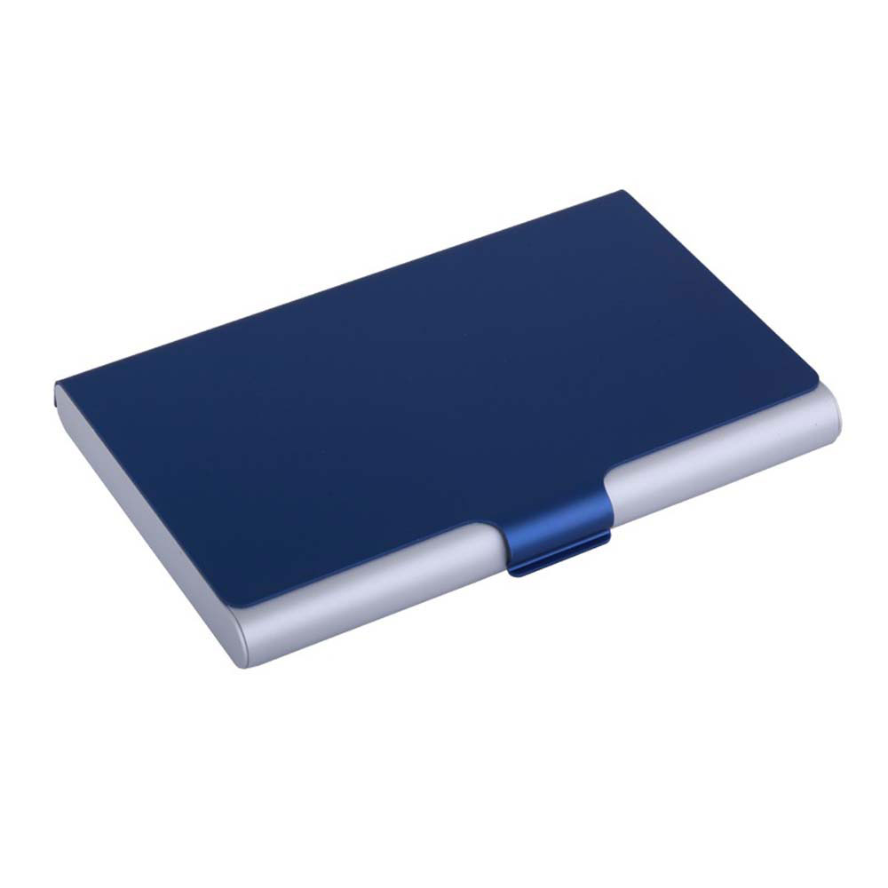 Suport carti de vizita personalizat confectionat din aluminiu si prevazut cu capac colorat. Are un design modern si o capacitate de 15-18 carti de vizita. Se livreaza in cutie cadou de culoare neagra. Culori: albastru, verde, negru. Dimensiuni: 9.3 x 6 x 1 cm. Va recomandam personalizarea prin tampografie, gravura sau print UV. Costurile de personalizare se calculeaza separat in functie de specificatiile si detaliile tehnice ale proiectului care se doreste sa se realizeze. Comanda minima 100 buc.