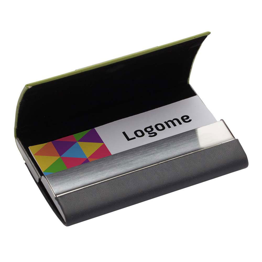 SUPORT CARTI DE VIZITA DUBLU PIELE ECOLOGICA JOINT NEGRU/VERDE