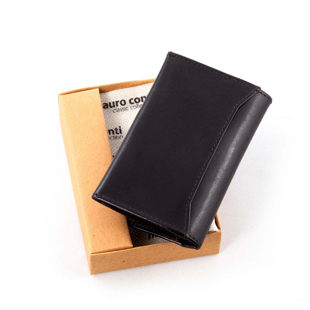 SUPORT CARTI DE VIZITA PIELE NATURALA NAVES NEGRU