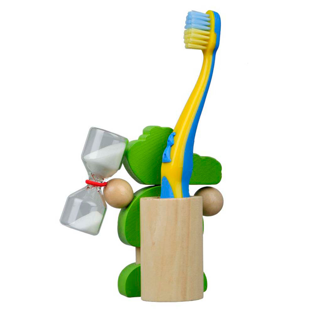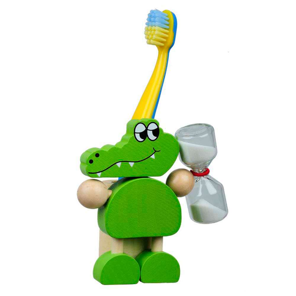 Suport personalizat pentru periuta de dinti a celor mici. Este prevazuta cu o clepsidra de 3 minute pentru cronometrarea duratei periajului dentar. Are un design prietenos in forma de crocodil. Produs confectionat din lemn. Se livreaza ambalat in cutie de carton de culoare alba. Dimensiuni: 7.5 x 8 x 4 cm. Va recomandam personalizarea prin serigrafie sau card cadou. Costurile de personalizare se calculeaza separat in functie de specificatiile si detaliile tehnice ale proiectului care se doreste sa se realizeze. Comanda minima 50 buc.