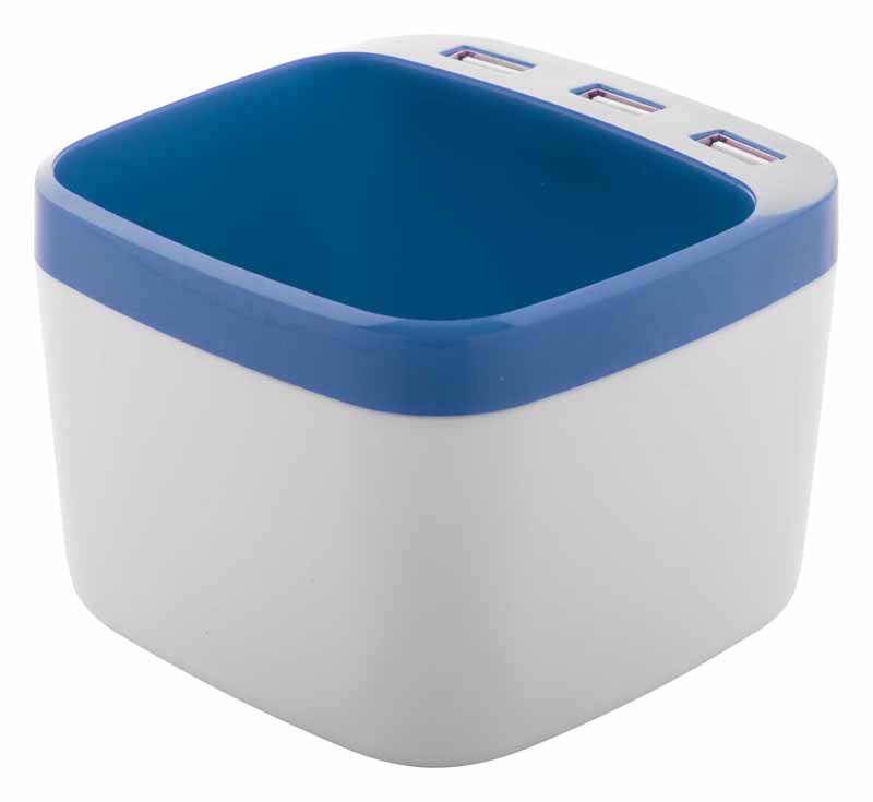 Suport pixuri personalizat prevazut cu hub USB cu trei porturi USB 2.0. Este un accesoriu de birou multifunctional care va ofera posibilitatea incarcarii dispozitivelor mobile si transferul de informatii in acelasi timp. Prin personalizare, acest produs se transforma intr-un obiect promotional potrivit pentru atat pentru utilizarea in campanii promotionale cat si pentru uz intern. Dimensiuni: 9.5 x 9.5 x 7 cm. Culori: alb/rosu, alb/albastru, alb/gri. Pretul afisat nu include costurile pentru personalizarea produsului. Aceste costuri se calculeaza la cerere in functie de detaliile de personalizare ale proiectului dvs. Pentru personalizare suport pixuri va recomandam tampografia sau serigrafia. Comanda minima: 50 buc. Pretul nu include TVA.