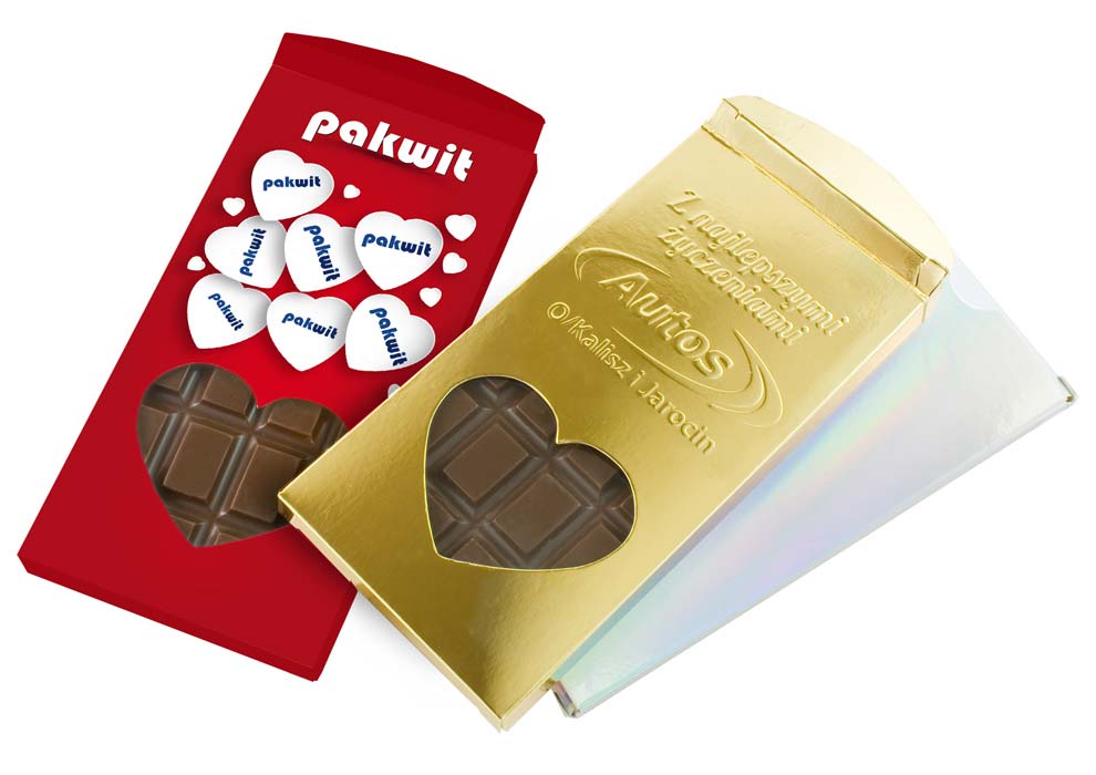 Tableta de ciocolata belgiana personalizata in editie speciala de Valentine’s Day. Aceasta ciocolata poate reprezenta un cadou potrivit in aceasta zi speciala. Fabricata din ciocolata belgiana de calitate si ambalat intr-o cutie cu fereastra in forma de inima, aceasta ciocolata va incanta orice persoana. Cutia este confectionata din carton de calitate cu o textura de tip canvas iar tabelta de ciocolata este ambalata in folie transparenta. In functie de preferinte se poate alege din mai multe arome de ciocolata disponibile. Dimensiuni taleta: 15.3 x 7.5 x 0.8 cm. Dimensiuni cutie: 15.8 x 8.1 x 1 cm. Gramaj: 90g. Termen de valabilitate: 6 luni. Pretul include costurile pentru personalizarea produsului prin imprimare digitala. Comanda minima: 200 buc.