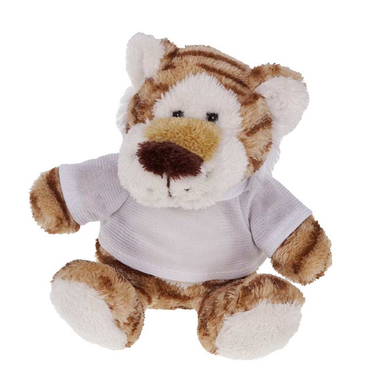 Tigru de plus personalizat, confectionat din material moale si placut la atingere. Este prevazut cu un tricou de culoare alba care poate fi personalizat in functie de nevoile dvs. Este un obiect promotional ideal pentru campaniile dedicate copiilor, pentru tombole cu premii sau evenimente pentru copii. Tricoul se livreaza ambalat separat. Produs confectionat din plus si poliester. Dimensiuni: 16 cm. Va recomandam personalizare jucarie plus prin serigrafie transferata. Costurile de personalizare se calculeaza separat in functie de siglele sau textele solicitate. Comanda minima 50 buc.