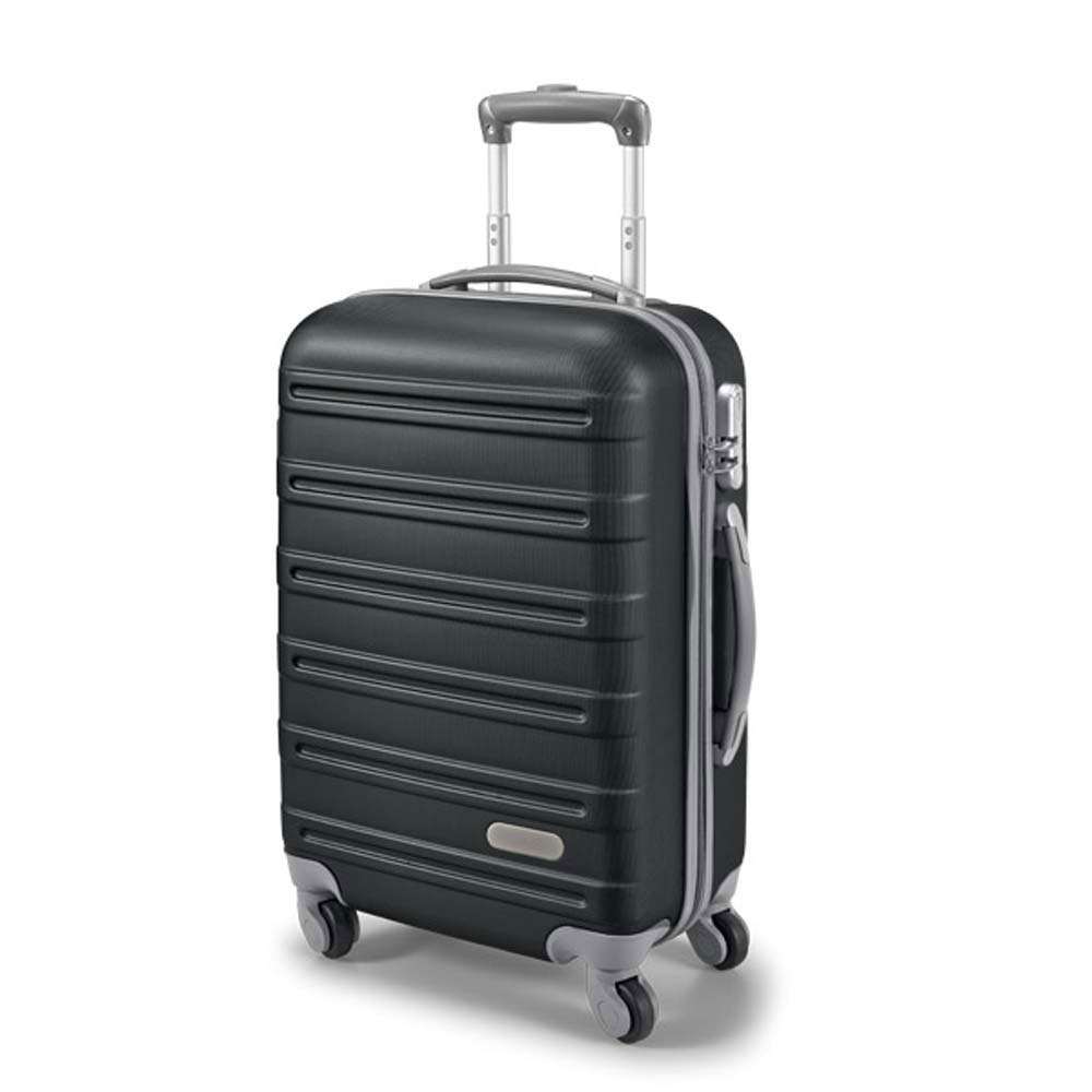Troler personalizat rigid confectionat din ABS. Design modern prevazut cu patru roti pentru transport rapid. Este prevazut cu maner telescopic din aluminiu prevazut cu buton pentru actionare si maner clasic pentru transportul in mana. Interiorul este captusit si compartimentat. Prezinta sistem de securizare cu cifru. Pe partea frontala este prevazut cu o placuta metalica detasabila potrivita pentru personalizare. Dimensiuni: 35 x 59 x 20 cm. Dimensiuni placuta: 6 x 1.5 cm. Va recomandam personalizarea prin serigrafie directa. Costurile de personalizare se calculeaza separat in functie de specificatiile si detaliile tehnice ale proiectului care se doreste sa se realizeze. Comanda minima 50 buc.