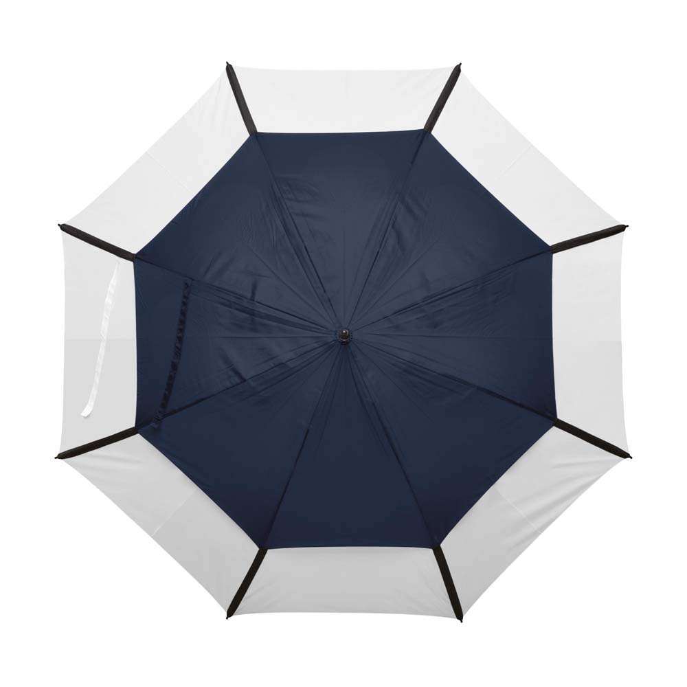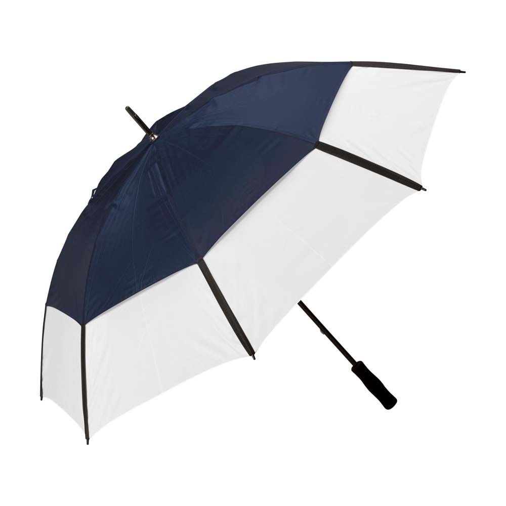 Umbrela antivant personalizata cu design in doua culori si dimensiuni generoase. Este prevazuta cu invelis in doua straturi, structura din fibra de sticla si ax confectionat din metal. Este un produs special conceput pentru a avea rezistenta crescuta pe timp de vant si furtuna. Este prevazuta cu un sistem care impiedica ruperea umbrelei in cazul unor rafale puternice de vant. Manerul este confectionat din metal si este acoperit cu spuma fina. Prinderea se realizeaza cu banda dubla cu scai iar cele doua invelisuri sunt confectionate din poliester 190T si nailon 190T. Se livreaza impreuna cu husa. Este un produs practic si util oricarei persoane care prin personalizare se poate transforma intr-un cadou corporate deosebit. Aceasta umbrela personalizata este potrivita pentru utilizarea in timpul partidelor de golf. Culori: alb/negru, alb/albastru, alb/verde, alb/rosu, alb/bleumarin. Dimensiuni: diametru 130 x 100 cm. Va recomandam personalizare umbrela prin serigrafie. Costurile de personalizare se calculeaza separat in functie de detaliile tehnice ale proiectului dvs. Comanda minima 50 buc.