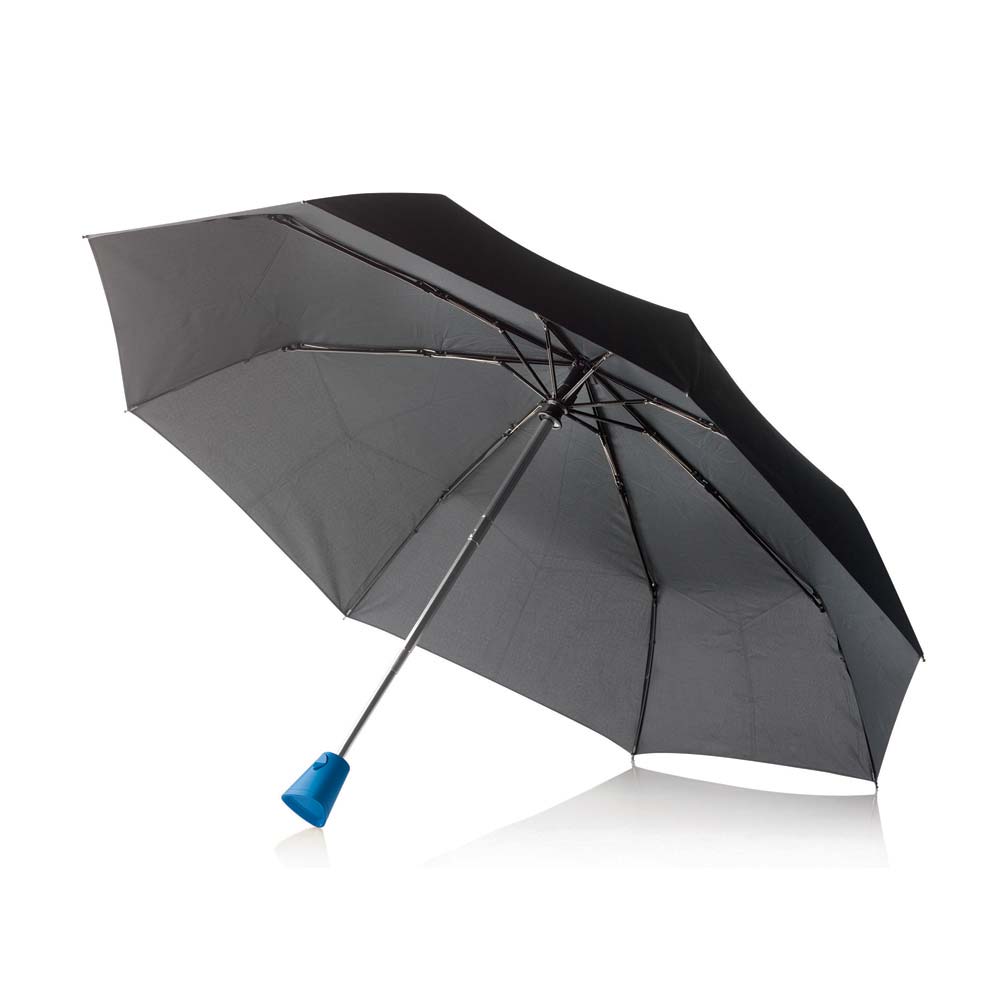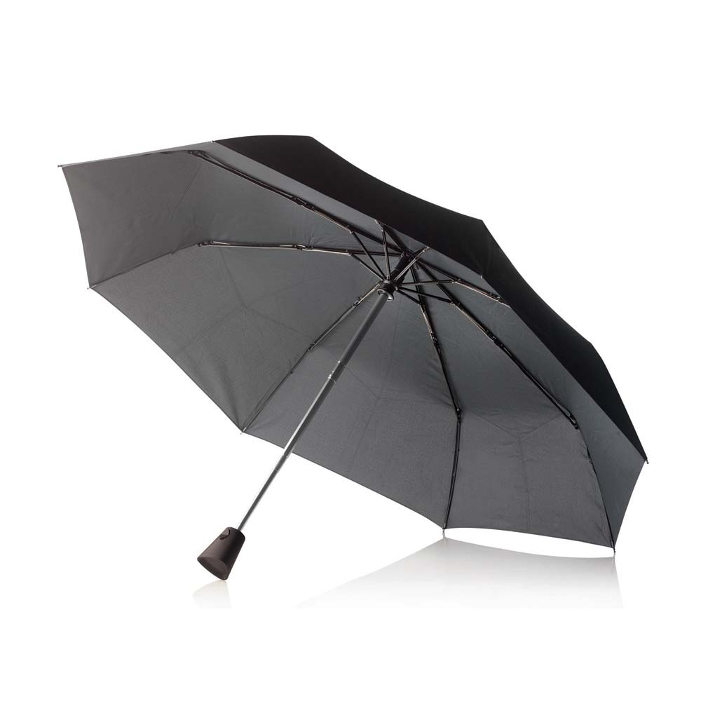 Umbrela automata personalizata cu design modern si ergonomic. Invelisul acestei umbrele personalziate este realizat din materiale reciclate si are o rezistenta crescuta. Manerul are forma triunghiulara, este colorat si ergonomic. Sistemul de deschidere/inchidere este foarte usor de utilizat astfel incat nu vei avea niciodata probleme cu ploaia. Aceasta umbrela personalizata este ideala primava si toamna si poate fi un obiect promotional de succes in campania de promovarea a produselor companiei tale. Este un obiect promotional care se poate utiliza pentru cadouri corporate personalizate, cadouri personalizate sau in cadrul evenimentelor corporate.Umbrela personalizata se livreaza cu husa de protectie si cutie cadou. Culori: negru/verde, negru/albastru, negru, negru/alb. Dimensiuni: diametru 96 x 58 cm. Pentru personalizare umbrela va recomandam eticheta volumetrica. Costurile de personalizare se calculeaza separat in functie de specificatiile proiectului dvs. Comanda minima 50 buc.
