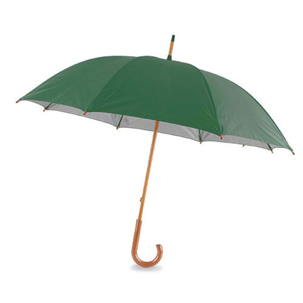 Umbrela personalizata cu maner curbat confectionat din lemn. Partea interioara a produsului este argintie. Se inchide cu banda cu scai. Invelisul este confectionat din poliester. Culori: negru, grena, bleumarin, bej, maro, verde. Diametru deschisa: 107 cm. Va recomandam sa personalizati acest produs prin: serigrafie 10*10 cm sau 30*30 cm. Costurile de personalizare se calculeaza separat in functie de cerintele clientului si de specificatiile proiectului care se doreste a se realiza. Comanda minima 50 buc.