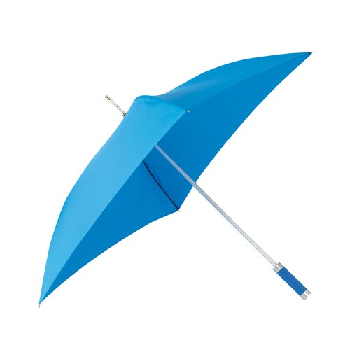 Umbrela personalizata patrata cu deschidere manuala. Produs cu ax din aluminiu, deschidere usoara, spite din fibra de sticla cu terminatii metalice argintii, maner din material EVA si invelis din poliester. Culori: bleu, negru, rosu, roz, portocaliu, galben, verde. Dimensiuni: diametru 120/ diametru 80 cm. Se recomanda personalizarea produsului prin serigrafie sau termotransfer. Costurile de personalizare se calculeaza separat in functie de specificatiile proiectului dvs. Comanda minima 50 buc. Pretul nu contine TVA.